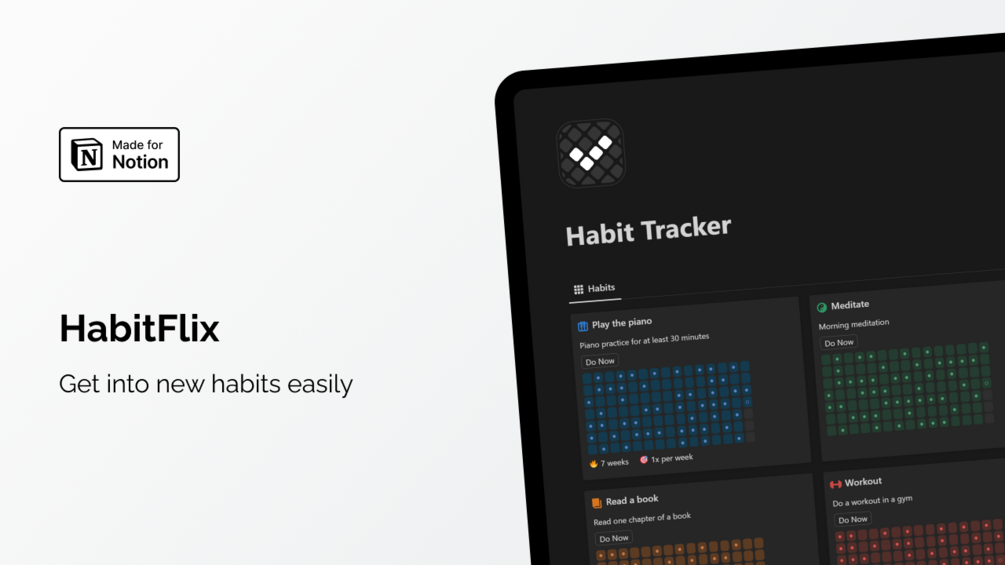 Build your habits with HabitFlix — easy-to-use habit tracker made for Notion!