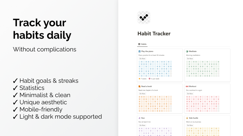 Do you want to master a new skill, keep yourself fit or just get used to something? Habit tracking is like a game where you mark off each time you do something good for yourself.